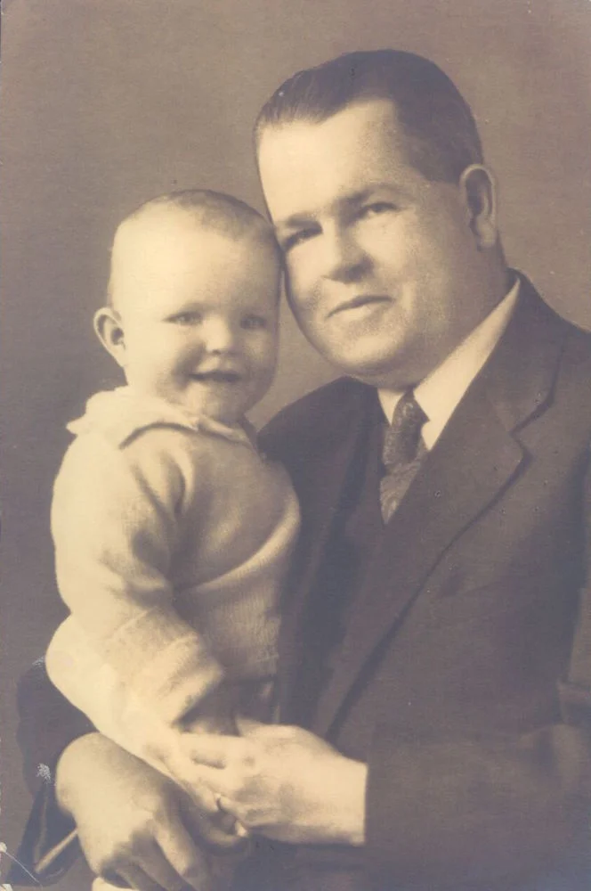 Marion Naifeh's father released from the Japanese concentration camp, surrounded by his sons and their families.
