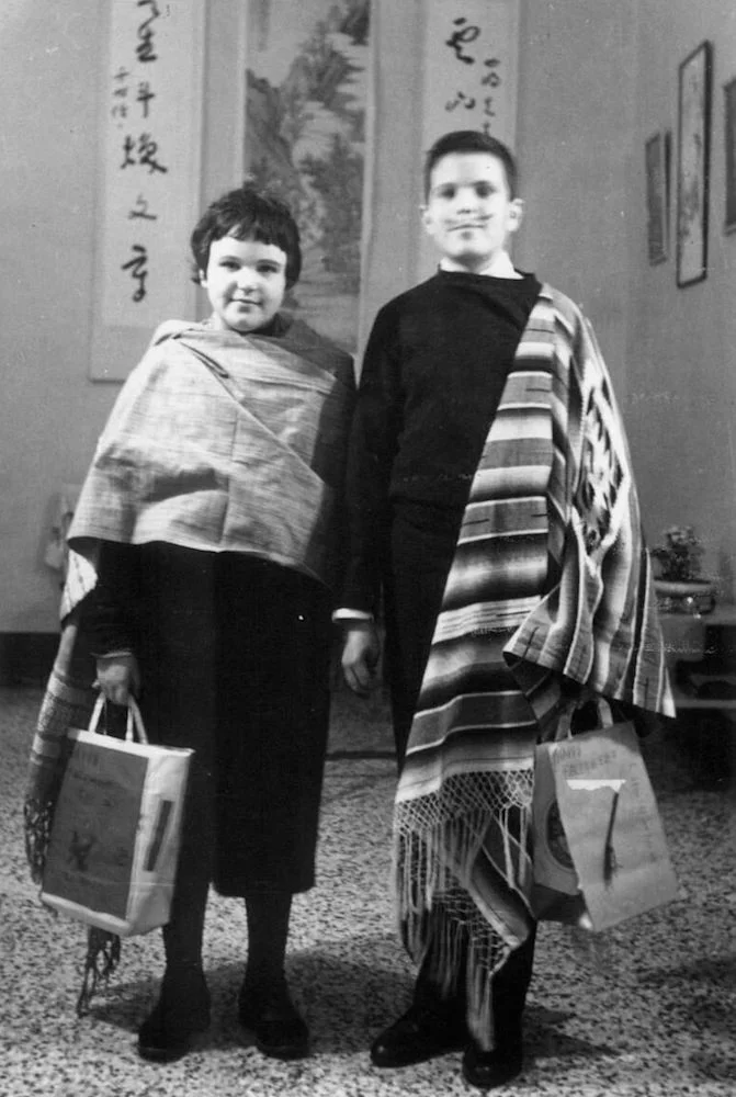 Carolyn and Steve trick-or-treating at the home of the Chinese Ambassador.