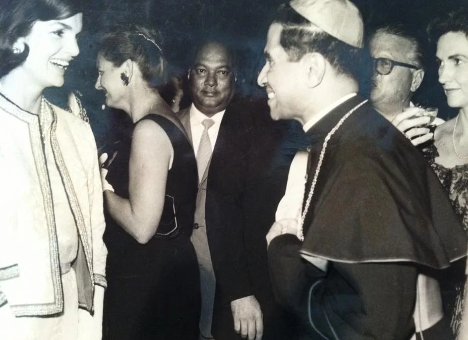 First Lady Jacqueline Kennedy meeting Archbishop Cordeiro during her trip to Karachi in 1962. Ahme Stone, a friend of the Naifehs who introduced them to the Archbishop, is at the far right.